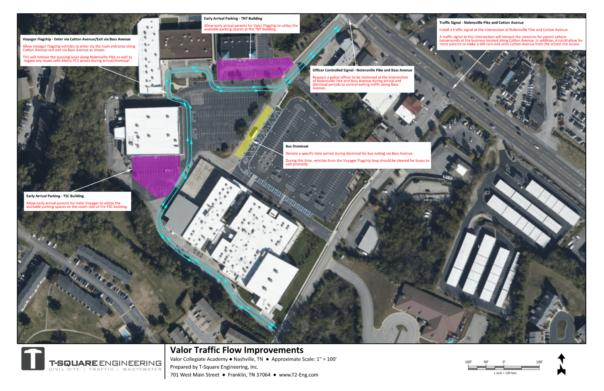 • Reconfiguring the Elementary, Middle, and High Schools’ arrival/dismissal traffic flows